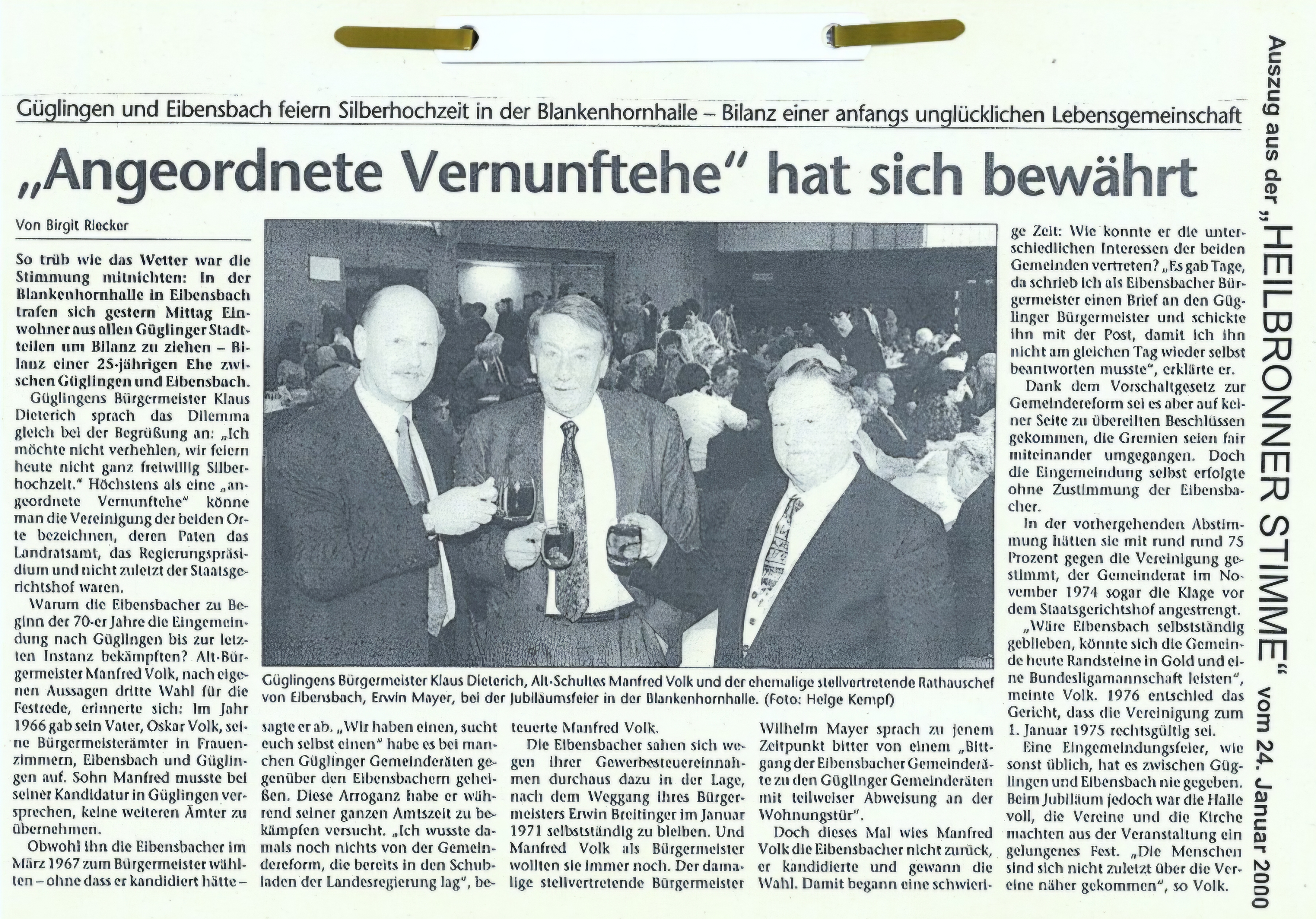 Am 5. April 1974 konnte man lesen, dass sich die Ehe mit Güglingen bewährt habe, die Gemeinsamkeit funktioniere und man 600000 DM für Erschließung und Straßenausbauten erhalten habe.