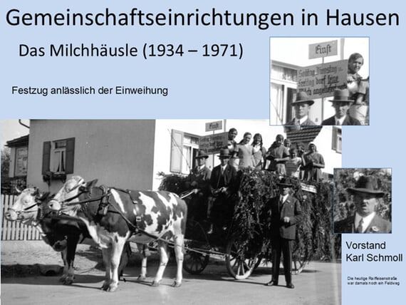Von 1934 bis 1971 gibt es mitten im Ort das Milchhäusle, das mit einem Festzug eingeweiht wird und auf das man stolz ist.
